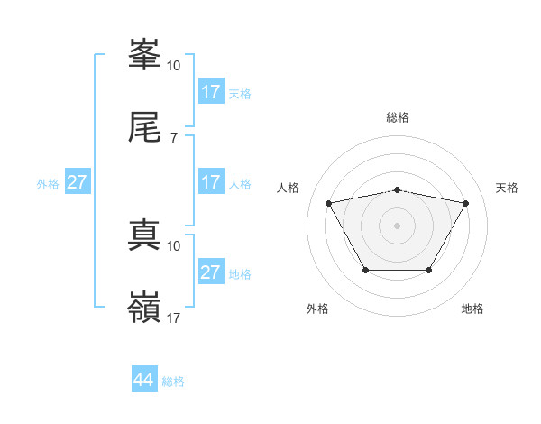 峯尾 真嶺さんを姓名の画数から五運を鑑定