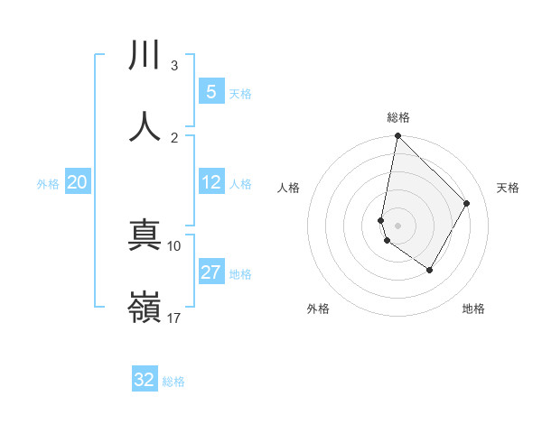 川人 真嶺さんを姓名の画数から五運を鑑定