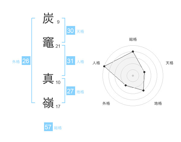 炭竈 真嶺さんを姓名の画数から五運を鑑定