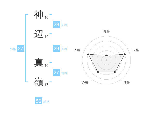 神辺 真嶺さんを姓名の画数から五運を鑑定