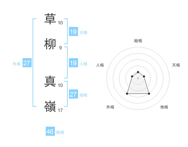 草柳 真嶺さんの総格は46画の1点!
