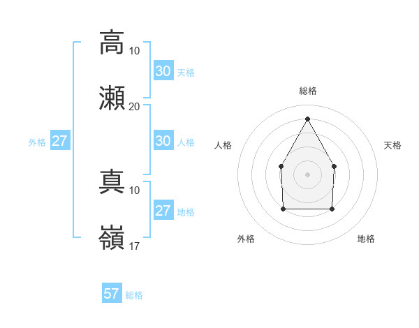 高瀬 真嶺さんを姓名の画数から五運を鑑定