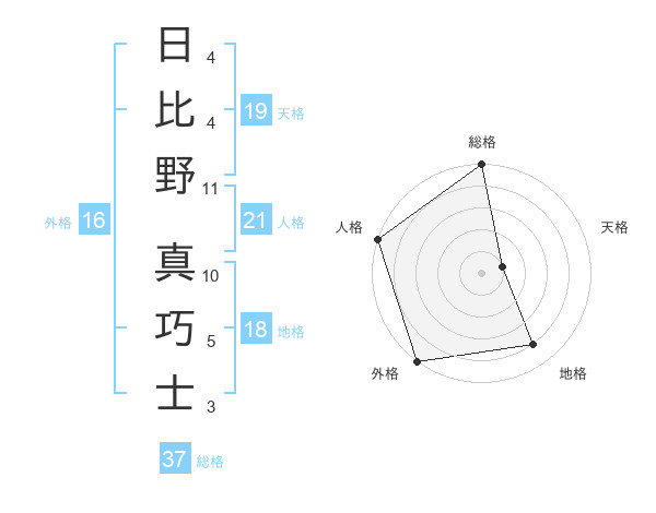 日比野 真巧士さんを姓名の画数から五運を鑑定