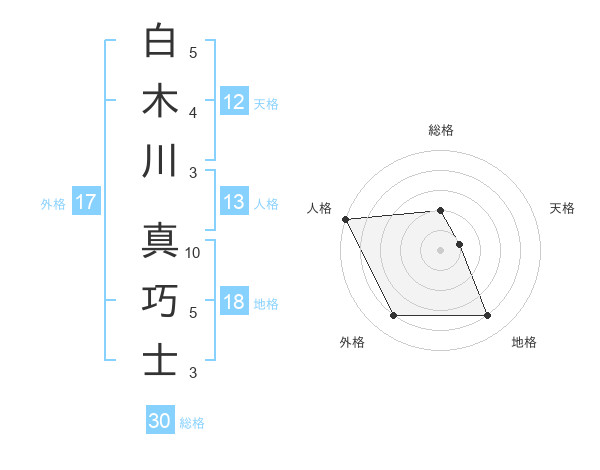 白木川 真巧士さんを姓名の画数から五運を鑑定