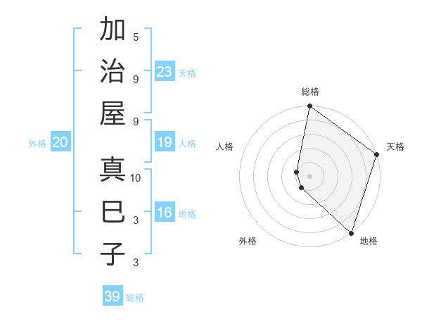 加治屋 真巳子さんを姓名の画数から五運を鑑定