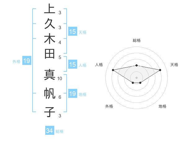 上久木田 真帆子さんを姓名の画数から五運を鑑定