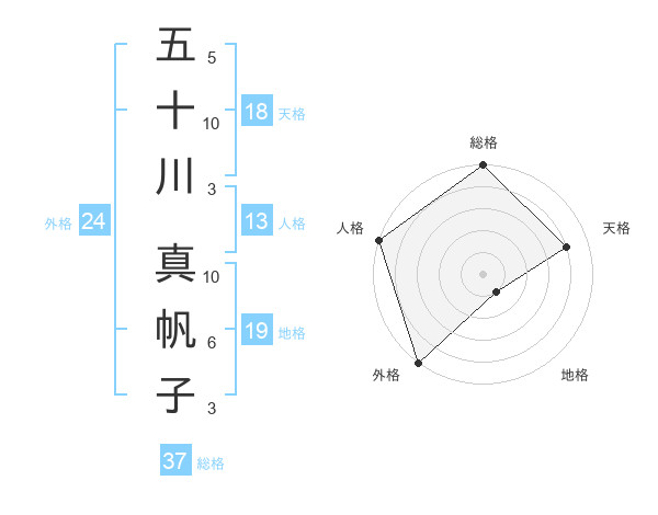 五十川 真帆子さんを姓名の画数から五運を鑑定