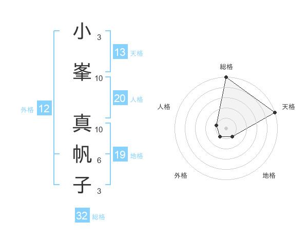 小峯 真帆子さんの天格は13画の5点!