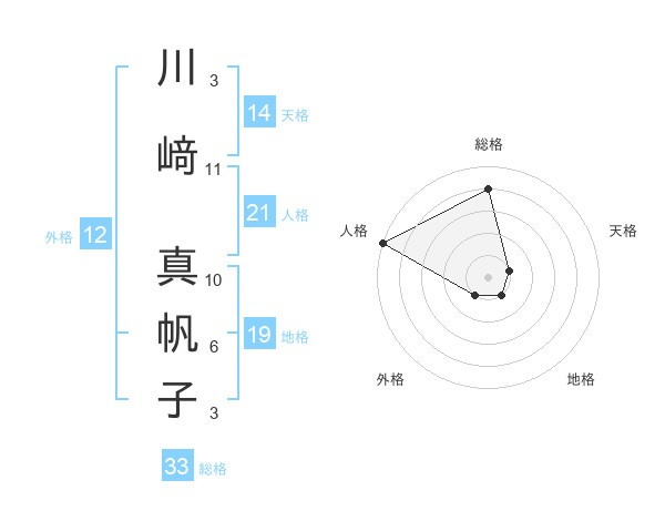 川﨑 真帆子さんの総格は33画の4点!