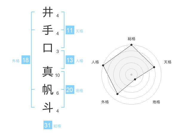 井手口 真帆斗さんの総格は31画の5点!