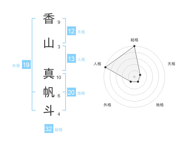 香山 真帆斗さんの総格は32画の5点!