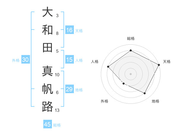 大和田 真帆路さんを姓名の画数から五運を鑑定