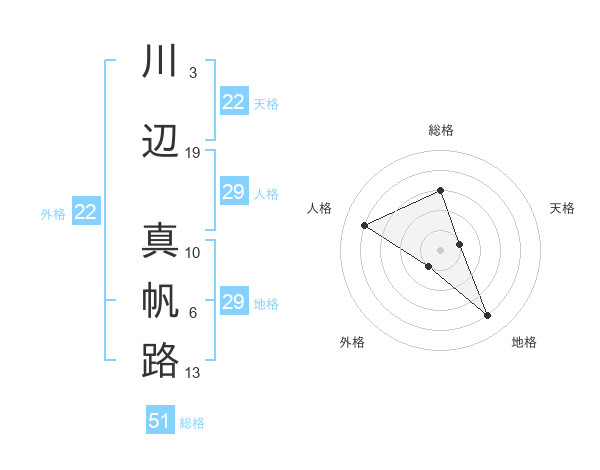 川辺 真帆路さんを姓名の画数から五運を鑑定