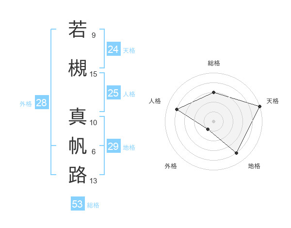 若槻 真帆路さんの総格は53画の3点!