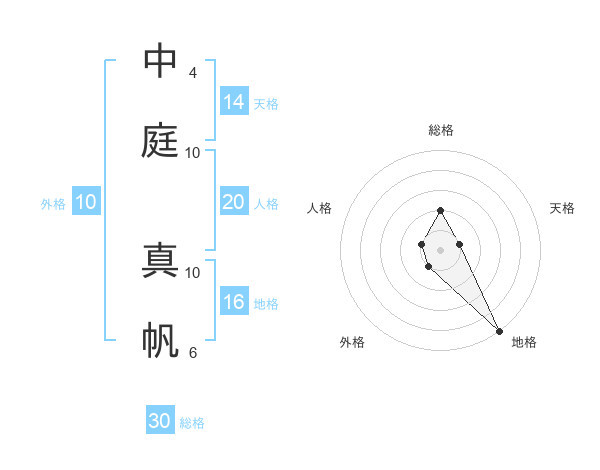 中庭 真帆さんを姓名の画数から五運を鑑定