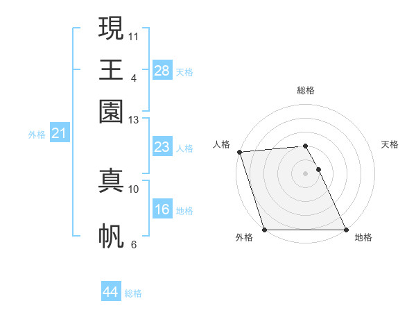 現王園 真帆さんを姓名の画数から五運を鑑定