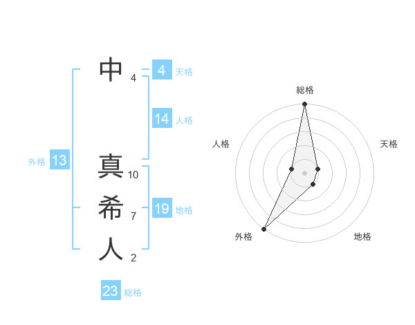 中 真希人さんの総格は23画の5点!