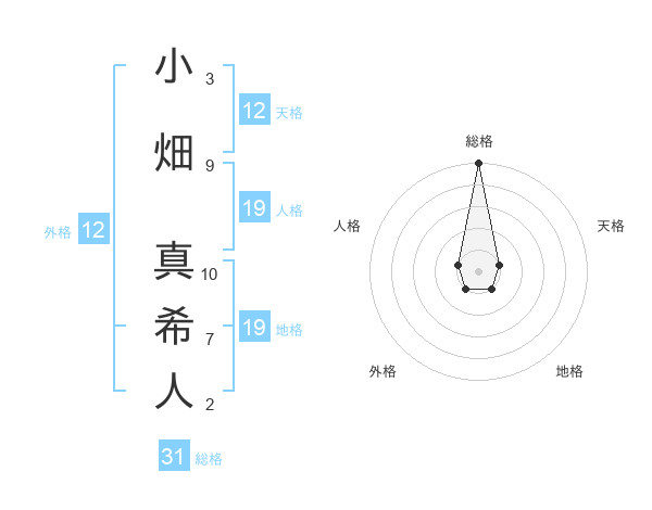 小畑 真希人さんを姓名の画数から五運を鑑定