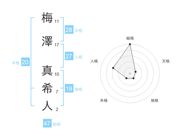 梅澤 真希人さんを姓名の画数から五運を鑑定