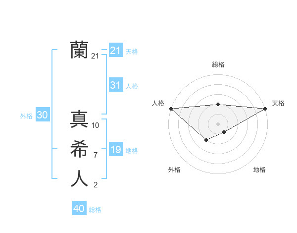 蘭 真希人さんの天格は21画の5点!