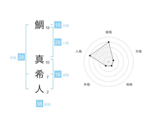 鯛 真希人さんの総格は38画の4点!