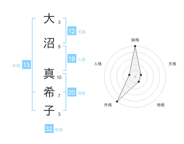 大沼 真希子さんの総格は32画の5点
