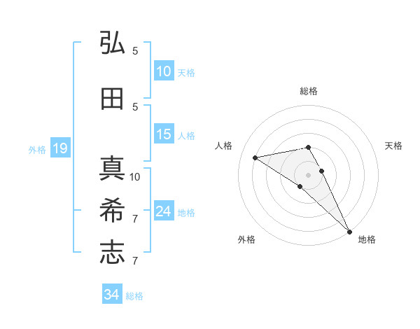 弘田 真希志さんを姓名の画数から五運を鑑定