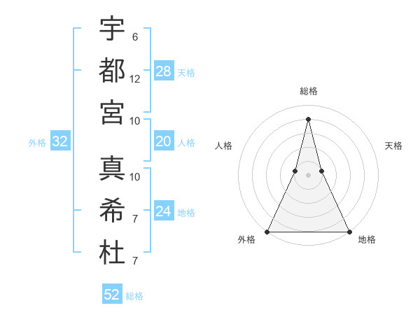 宇都宮 真希杜さんを姓名の画数から五運を鑑定
