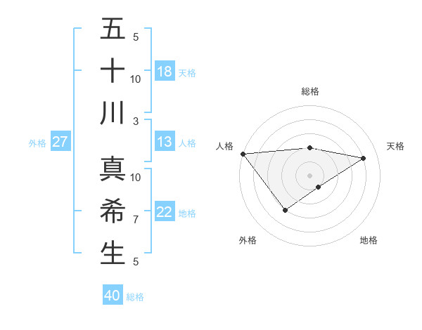 五十川 真希生さんを姓名の画数から五運を鑑定