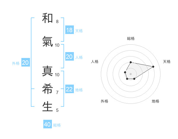 和氣 真希生さんを姓名の画数から五運を鑑定