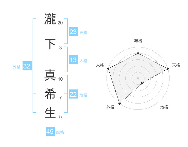 瀧下 真希生さんを姓名の画数から五運を鑑定