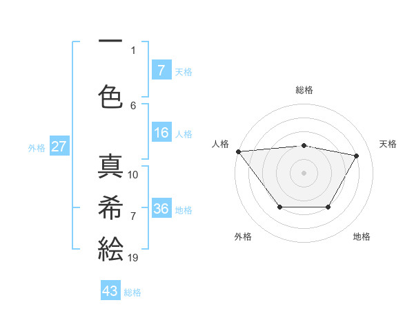 一色 真希絵さんの総格は43画の2点!