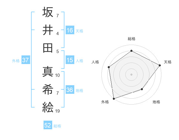 坂井田 真希絵さんを姓名の画数から五運を鑑定