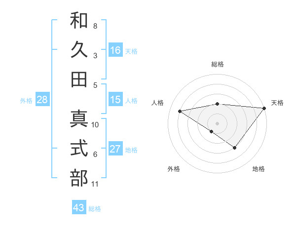 和久田 真式部さんを姓名の画数から五運を鑑定