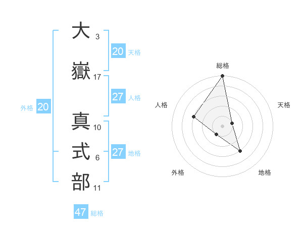 大嶽 真式部さんを姓名の画数から五運を鑑定