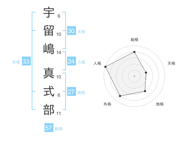 宇留嶋 真式部さんを姓名の画数から五運を鑑定
