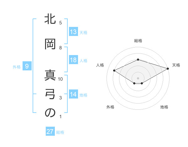 北岡 真弓のさんを姓名の画数から五運を鑑定