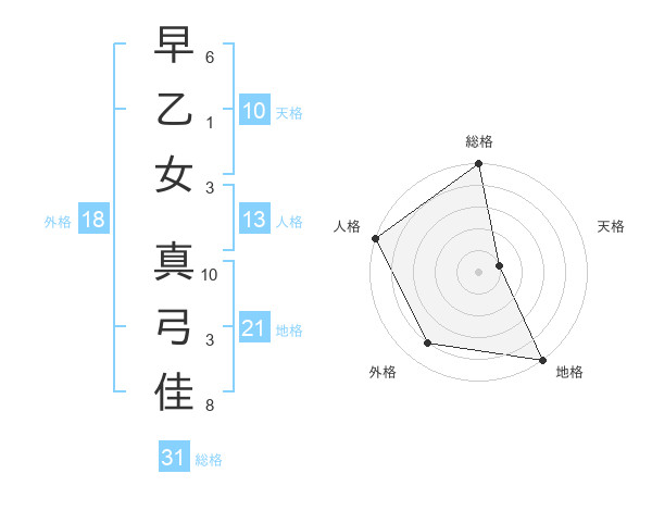 早乙女 真弓佳さんを姓名の画数から五運を鑑定