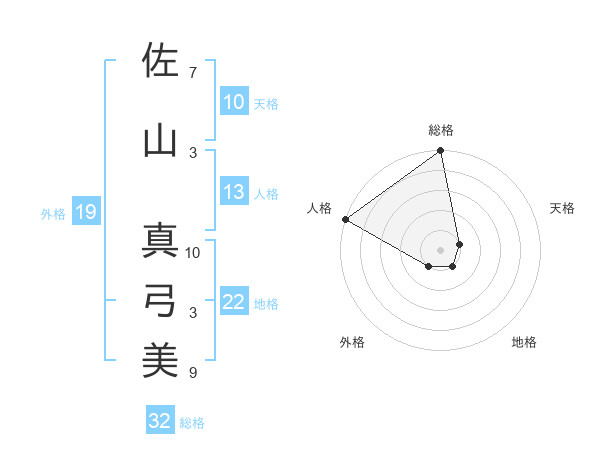 佐山 真弓美さんの総格は32画の5点!
