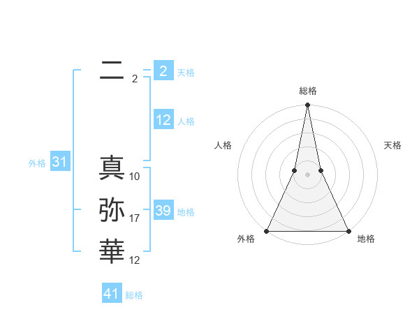 二 真弥華さんの外格は31画の5点!