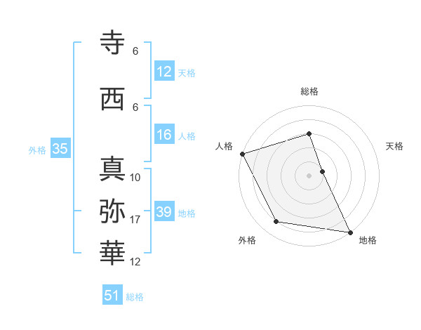 寺西 真弥華さんの総格は51画の3点!