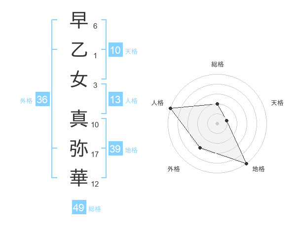 早乙女 真弥華さんを姓名の画数から五運を鑑定