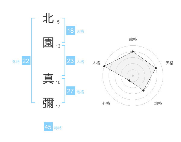 北園 真彌さんの総格は45画の4点!