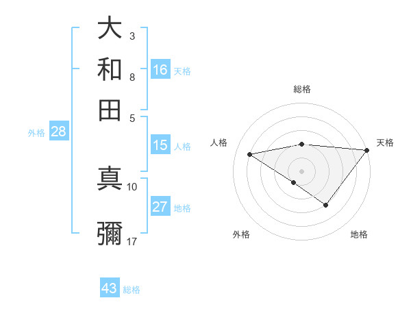 大和田 真彌さんを姓名の画数から五運を鑑定