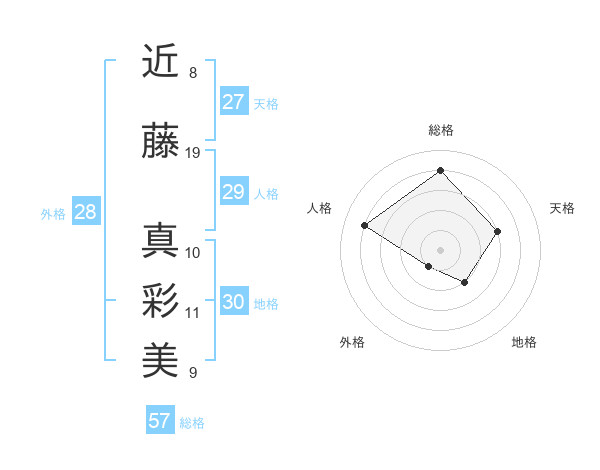 近藤 真彩美さんを姓名の画数から五運を鑑定