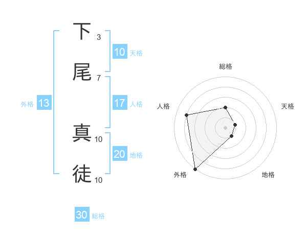 下尾 真徒さんの外格は13画の5点!