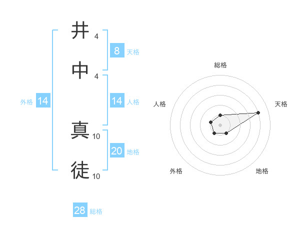 井中 真徒さんの総格は28画の1点!