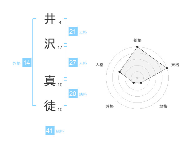 井沢 真徒さんの総格は41画の5点!