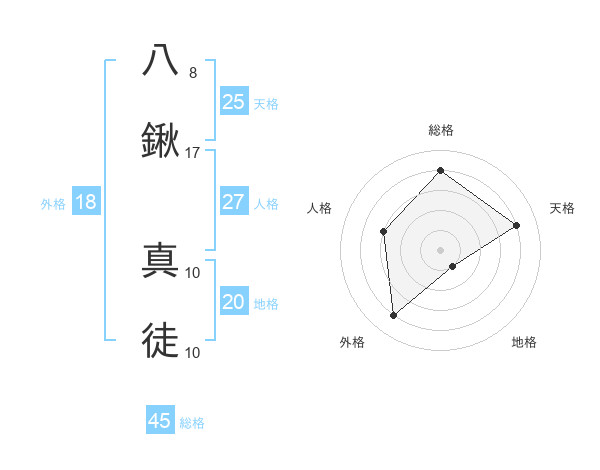 八鍬 真徒さんの総格は45画の4点!
