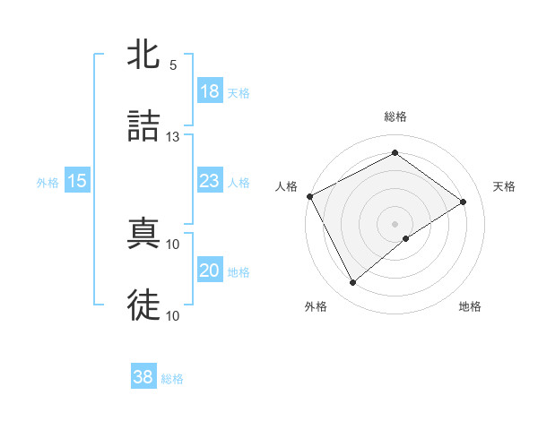 北詰 真徒さんを姓名の画数から五運を鑑定